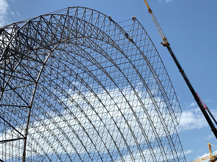 (2)网架加工前应对现场尺寸进行复测,确认无误后方可进行加工、安装;网架制作、运输、安装应遵守《空间网格结构技术规程》JGJ7-2010、《钢网架邢台螺栓球节点》JG/T 10-2009、《钢网架邢台螺栓球节点用高强度螺栓》 GB/T 16939-2016、《邢台钢结构邢台工程邢台施工规范》 GB50755-2012、《邢台钢结构邢台工程施工质量验收标准》 GB50205-2020。